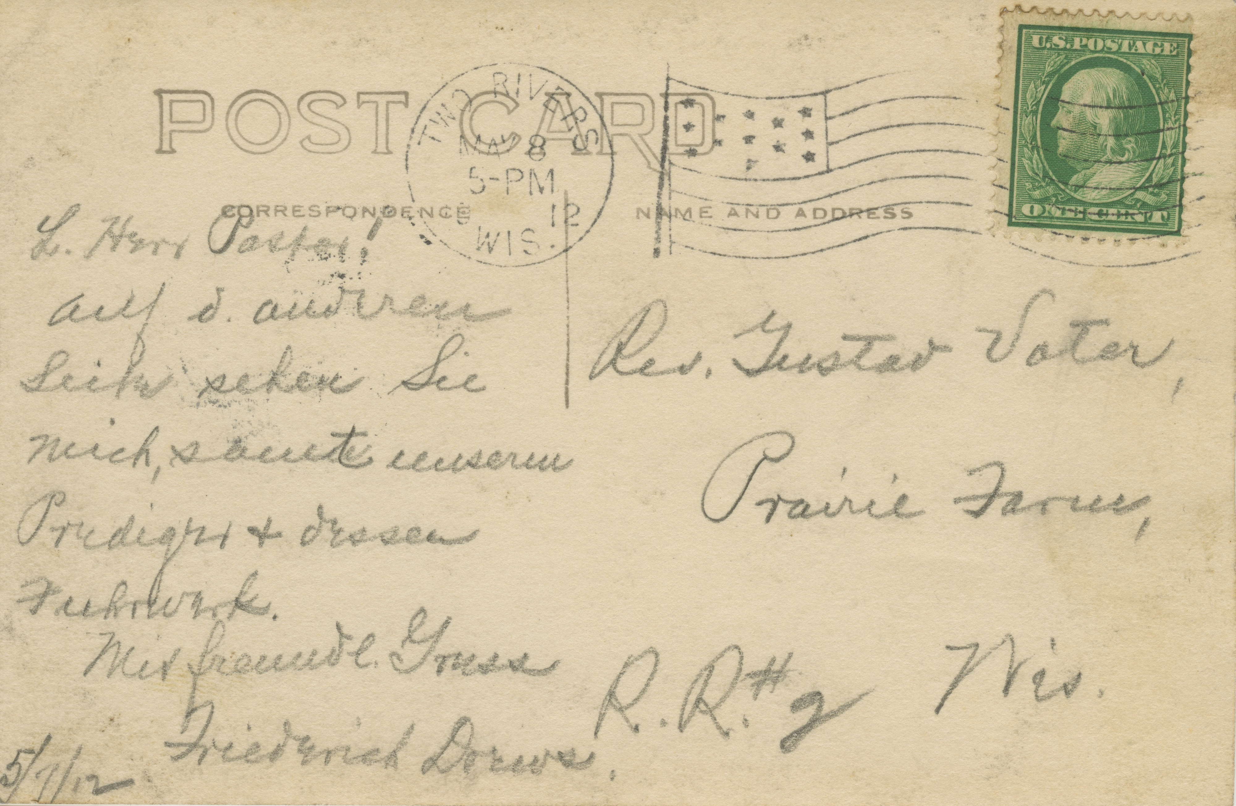 Historical postcards from the collection of Gustave Vater, pastor of St. Peter’s Lutheran Church in Mishicot, WI. from 1902 until 1908.