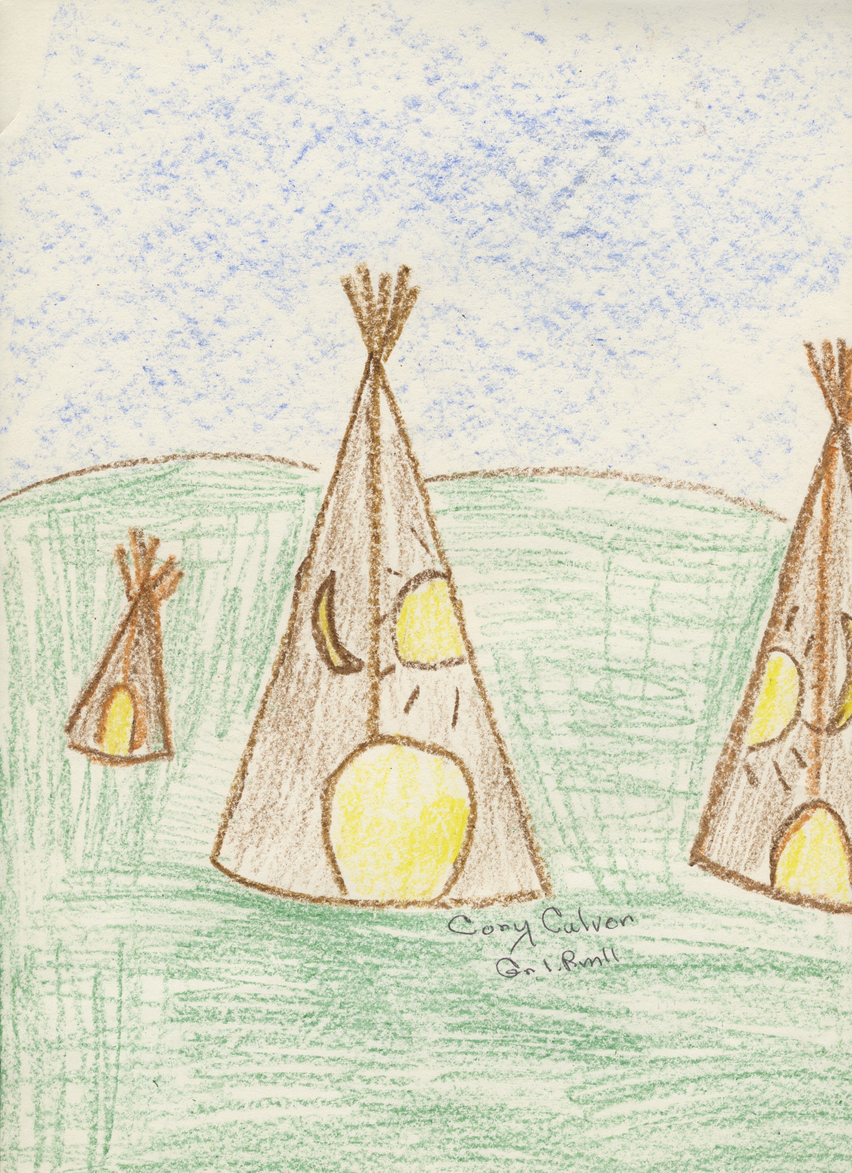 Original copies of the Native American illustrations created by O.H. Schultz Elementary School students during the 1984–1985 school years for the book Mishicot’s Meaningful Memories.