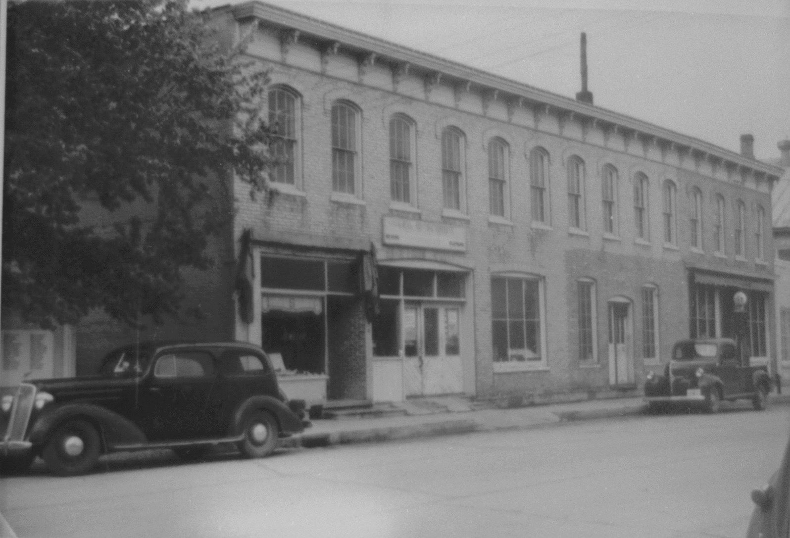 Two undated photos of the Terens Hardware Store building, later Stelzer & Schmidt Hardware Store, at 447 E Main Street, Mishicot, Wisconsin.