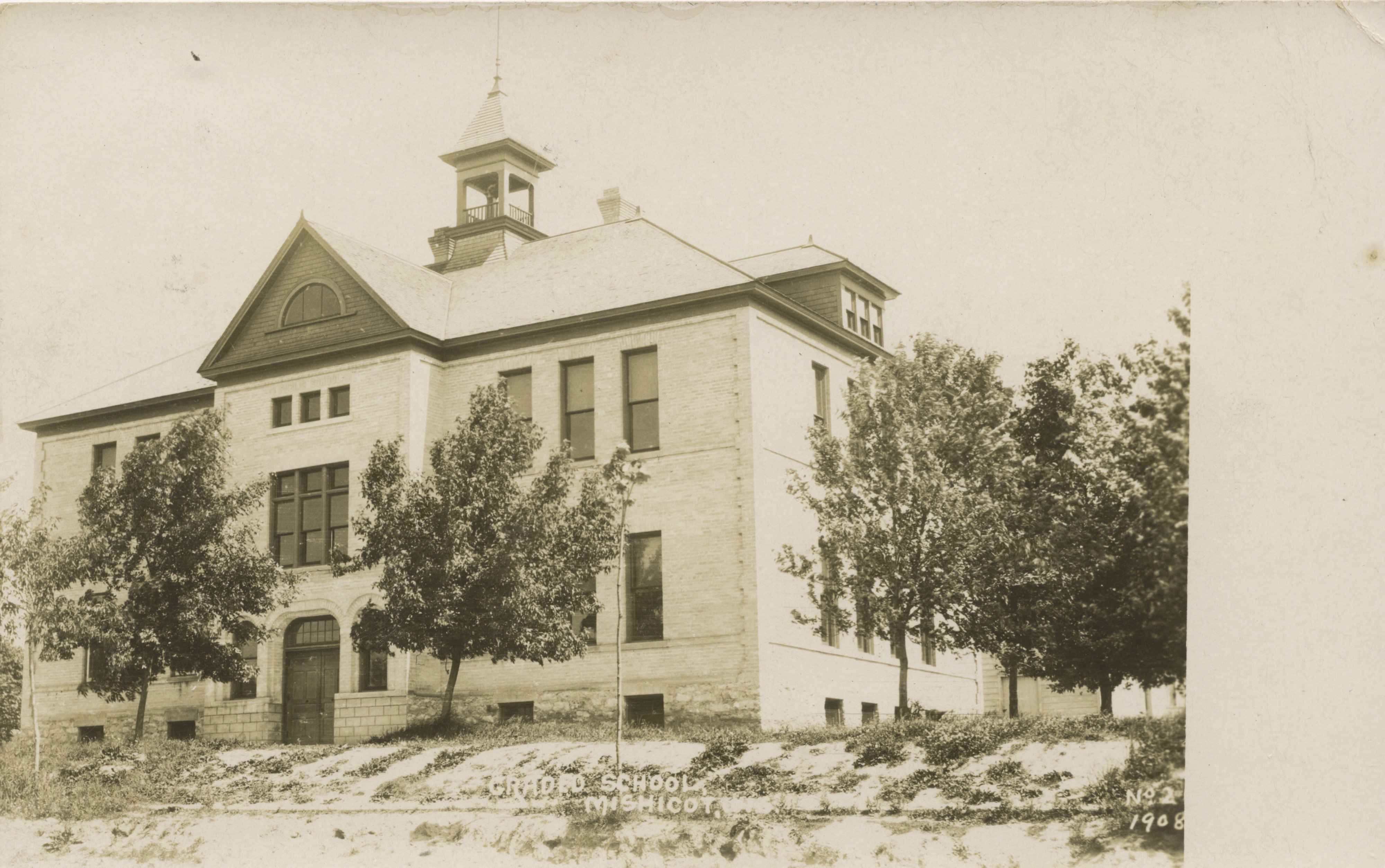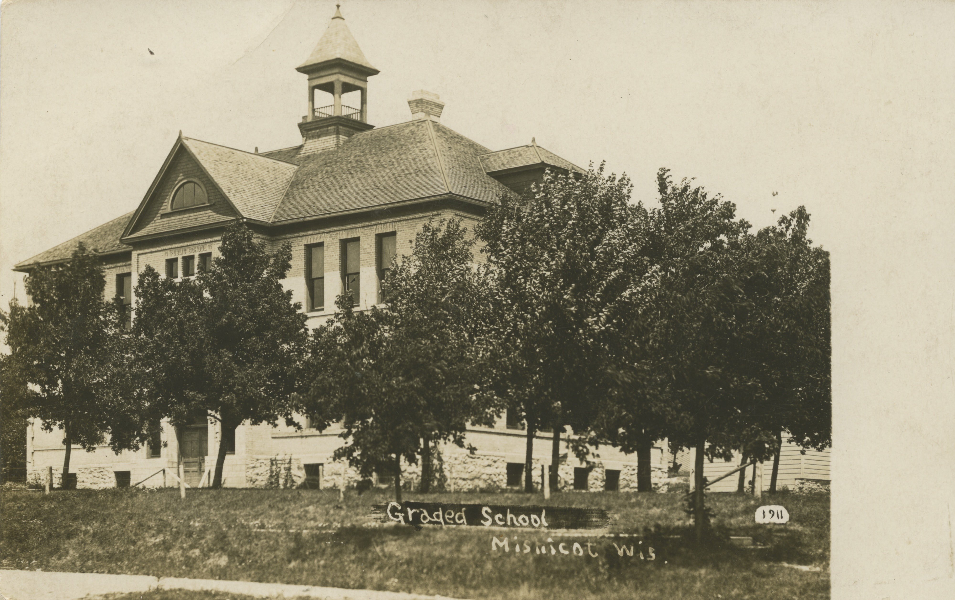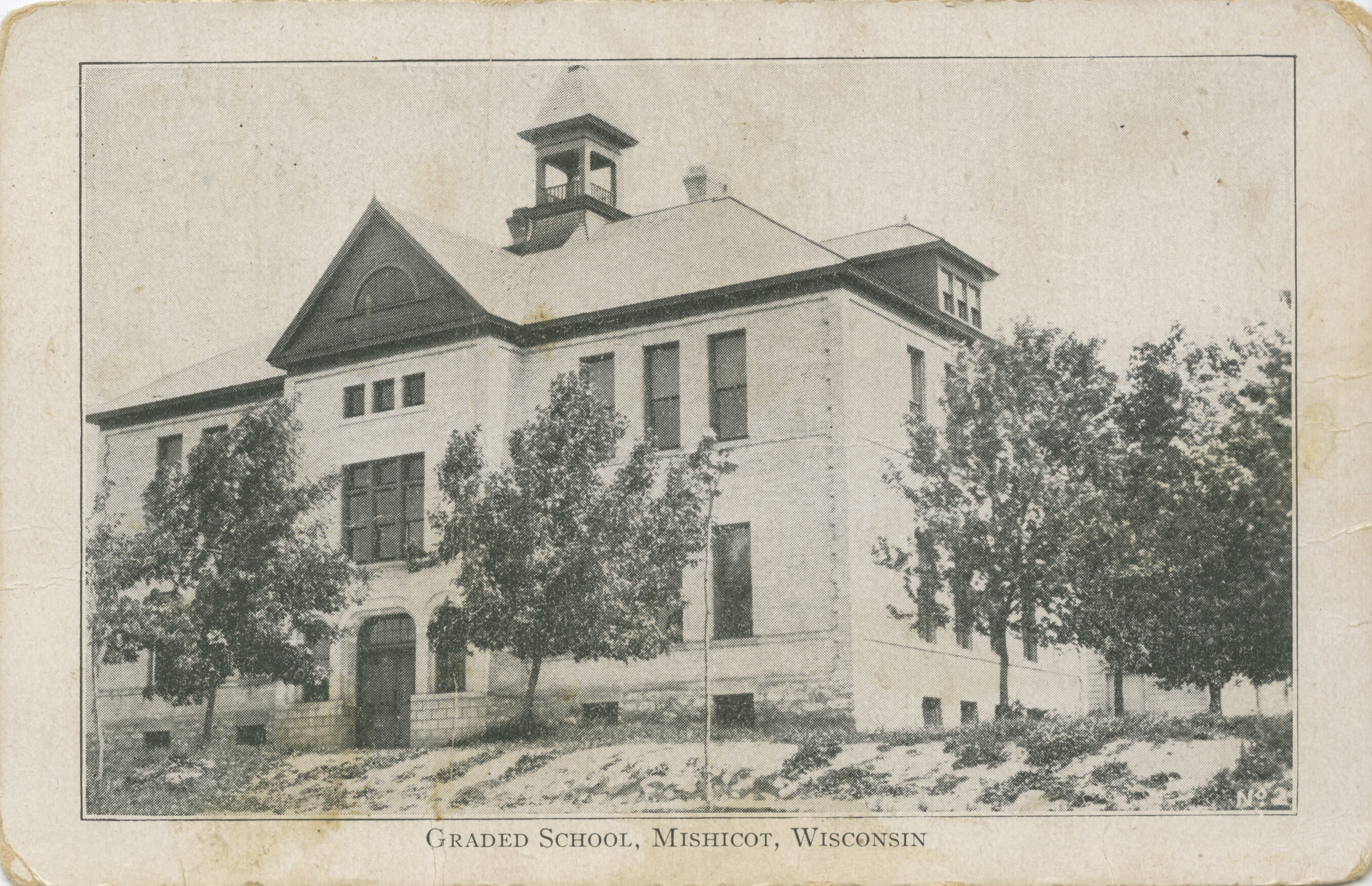 Miscellaneous postcards featuring the Rockway School on Elizabeth Street in Mishicot, Wisconsin.