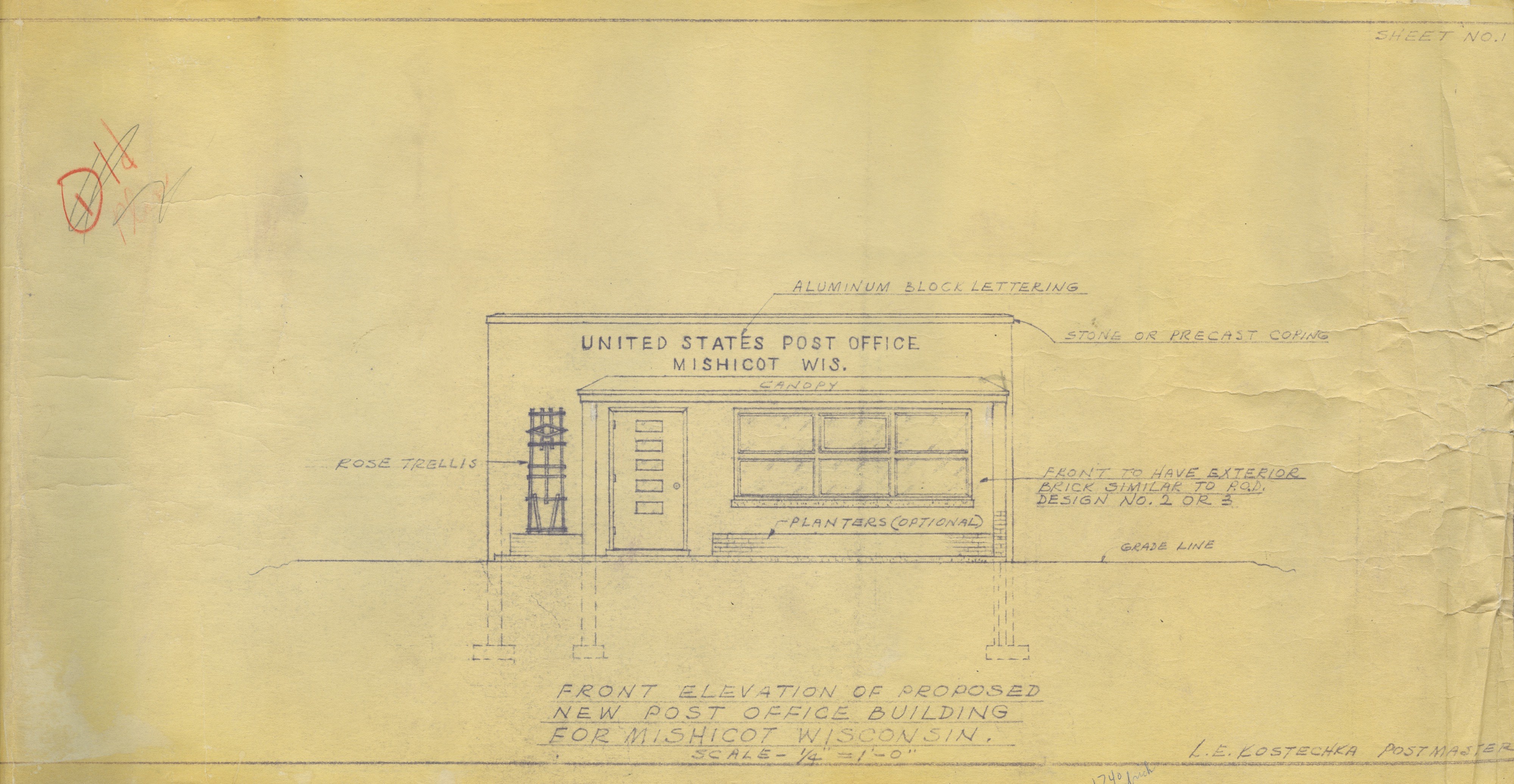A set of plans for the former Mishicot Post Office Building at 321 E. Main Street. This set is undated, but was presumably completed in 1959.