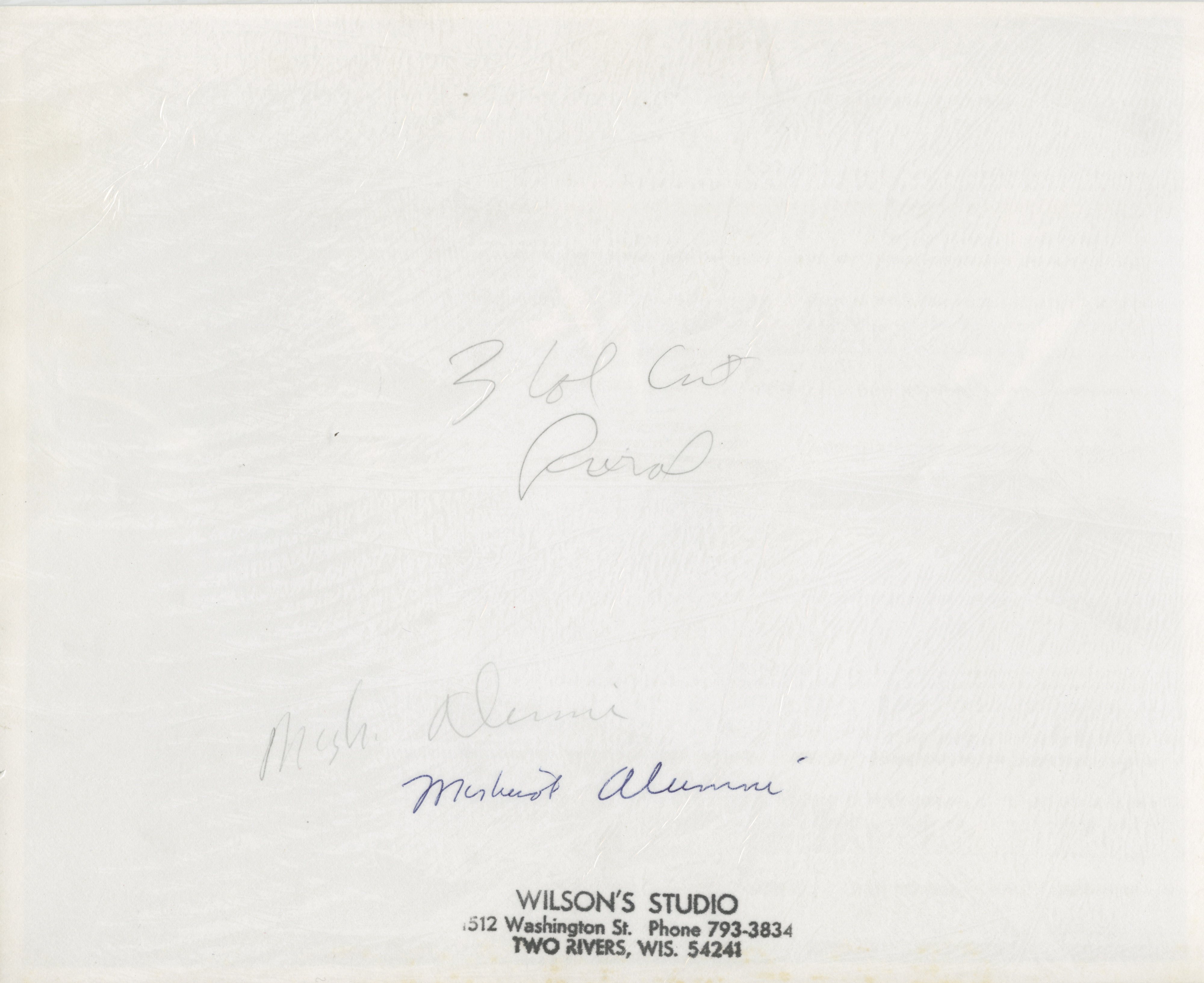 An undated, unidentified photo of members of the Mishicot High School Alumni. The photo was captured by Wilson’s Studio of Two Rivers, Wisconsin.