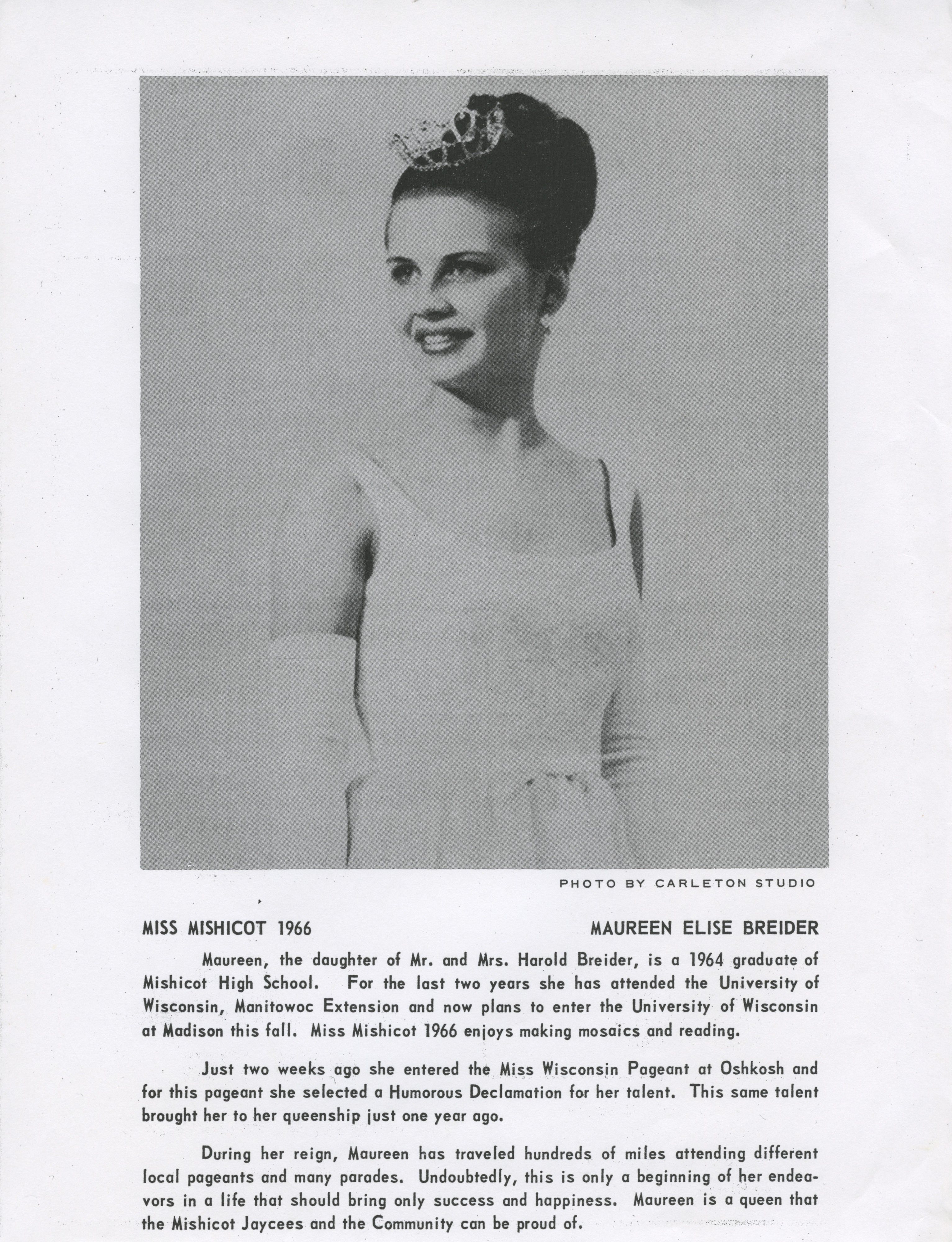 Tags: 1966, elsie breider, mishicot high school, miss mishicot, pageant