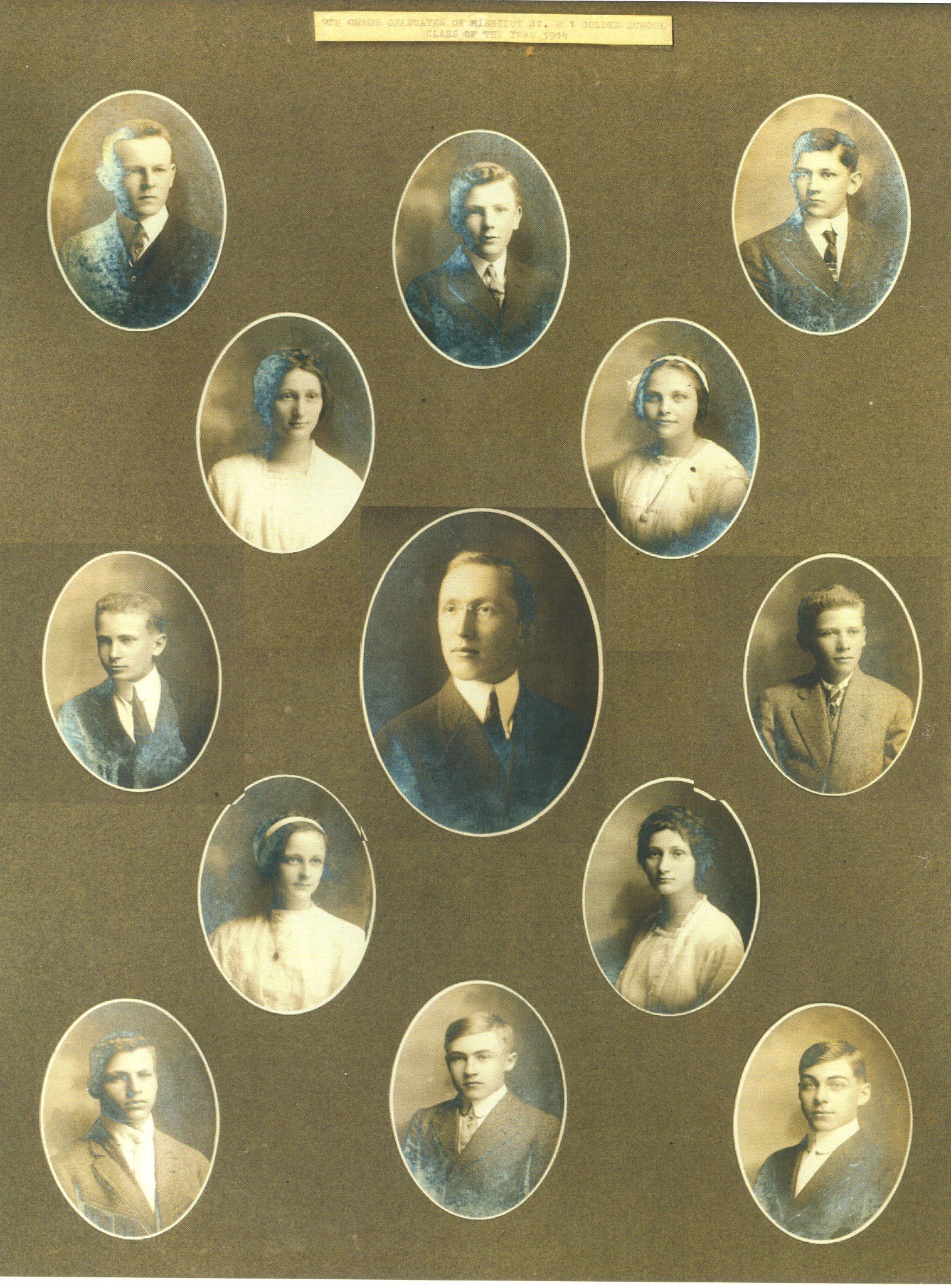 A 1914 collage group photo of 9th grade graduates of the Mishicot Jt. #1 Graded School.
