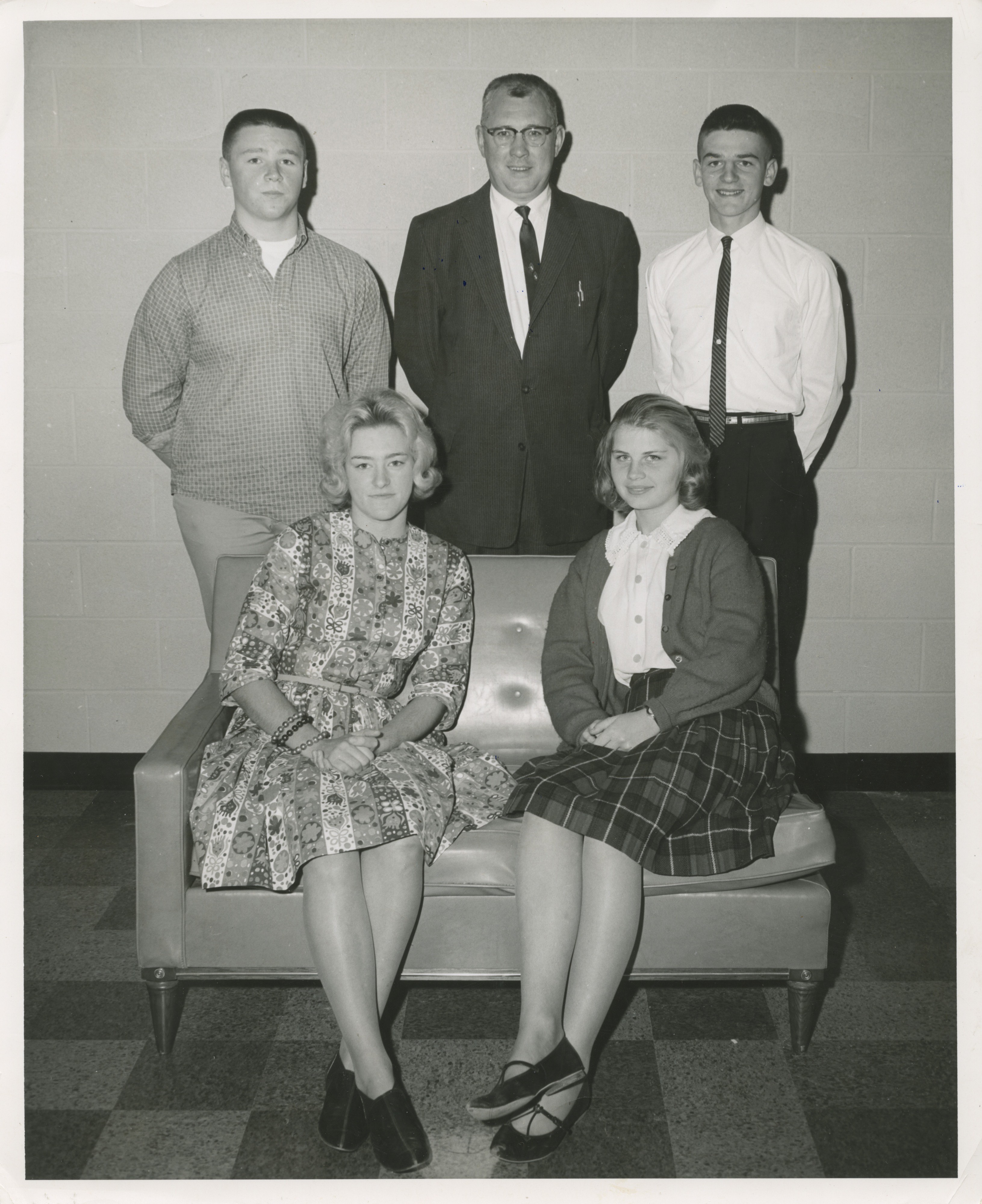 On October 29, the cast and committees of the One Act Play traveled to Gibraltar High School to participate with the other league schools in the annual “One Act Play Contest.” They received an “A” rating. After receiving this “A” rating, they traveled to the District Contest at Kaukauna High School where they again received an “A” rating. This “A” rating made them eligible to travel to the sectional contest held at Stevens Point. Here they received a “B” rating. The play, chosen by the director, Mr. Koch, was entitled, “The Boy Upstairs.”