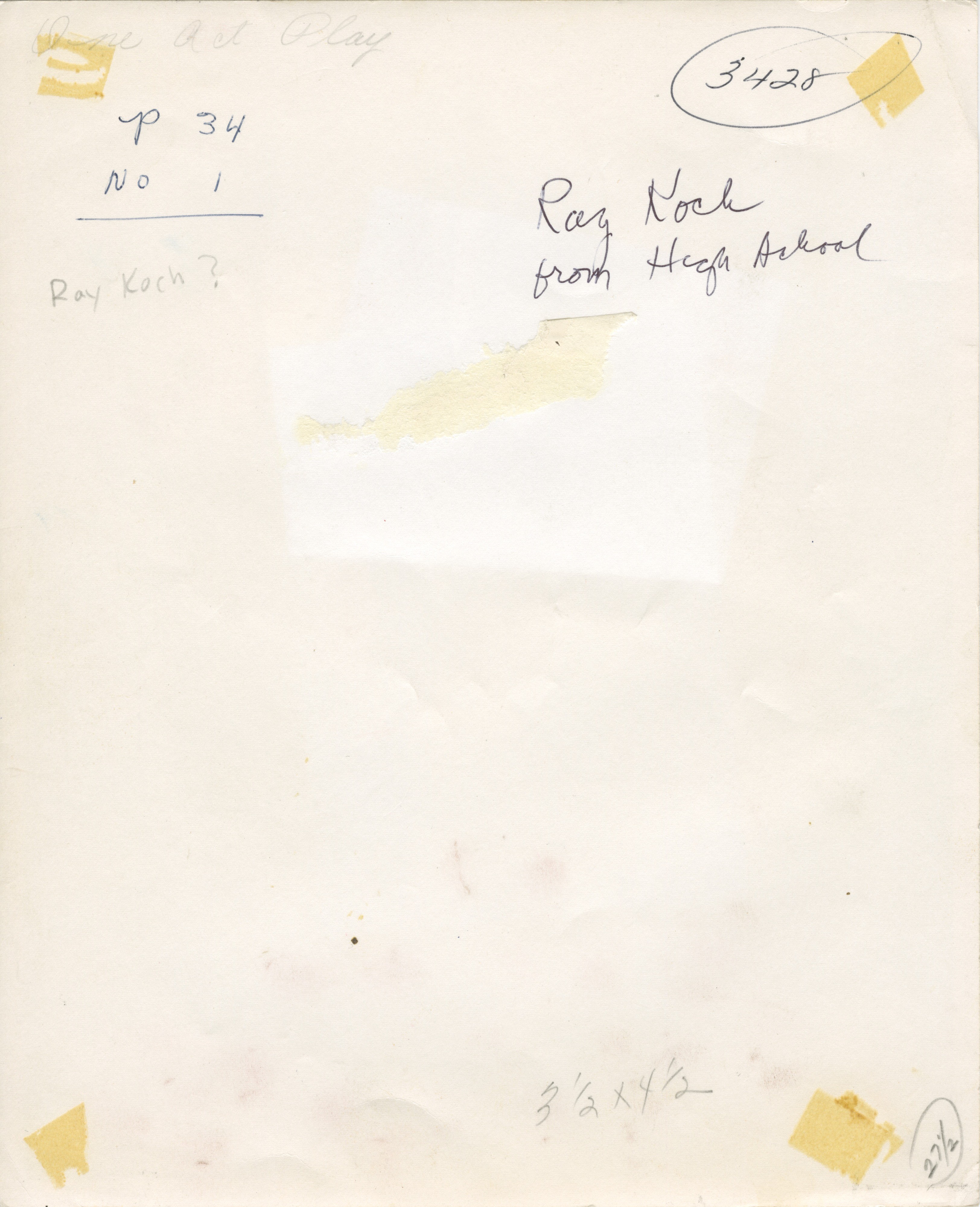 A photo labeled “One Act Play,” and “Ray Koch From High School.” From a Mishicot High School yearbook: