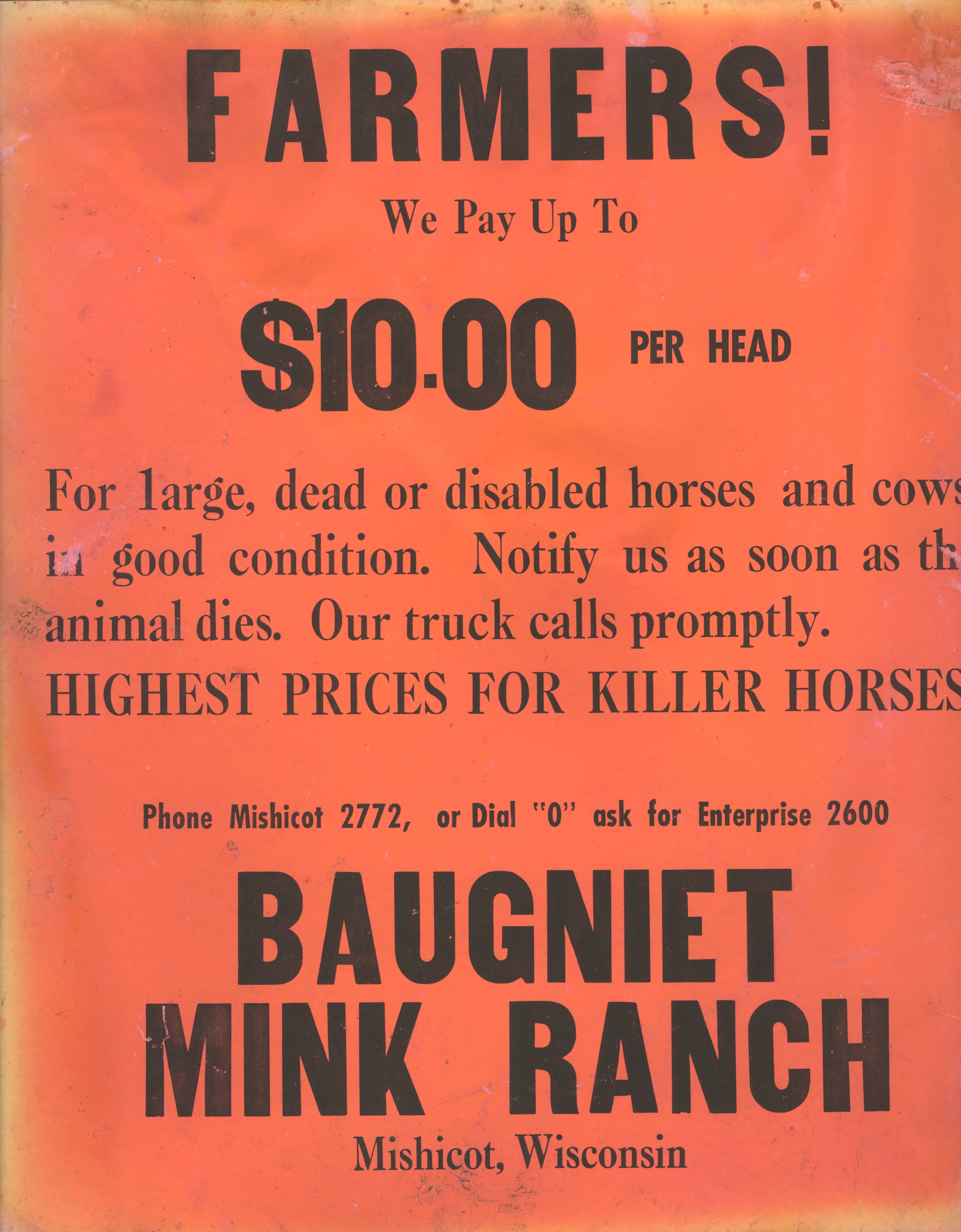 An undated poster advertisement for the Baugniet Mink Ranch in Mishicot, Wisconsin.