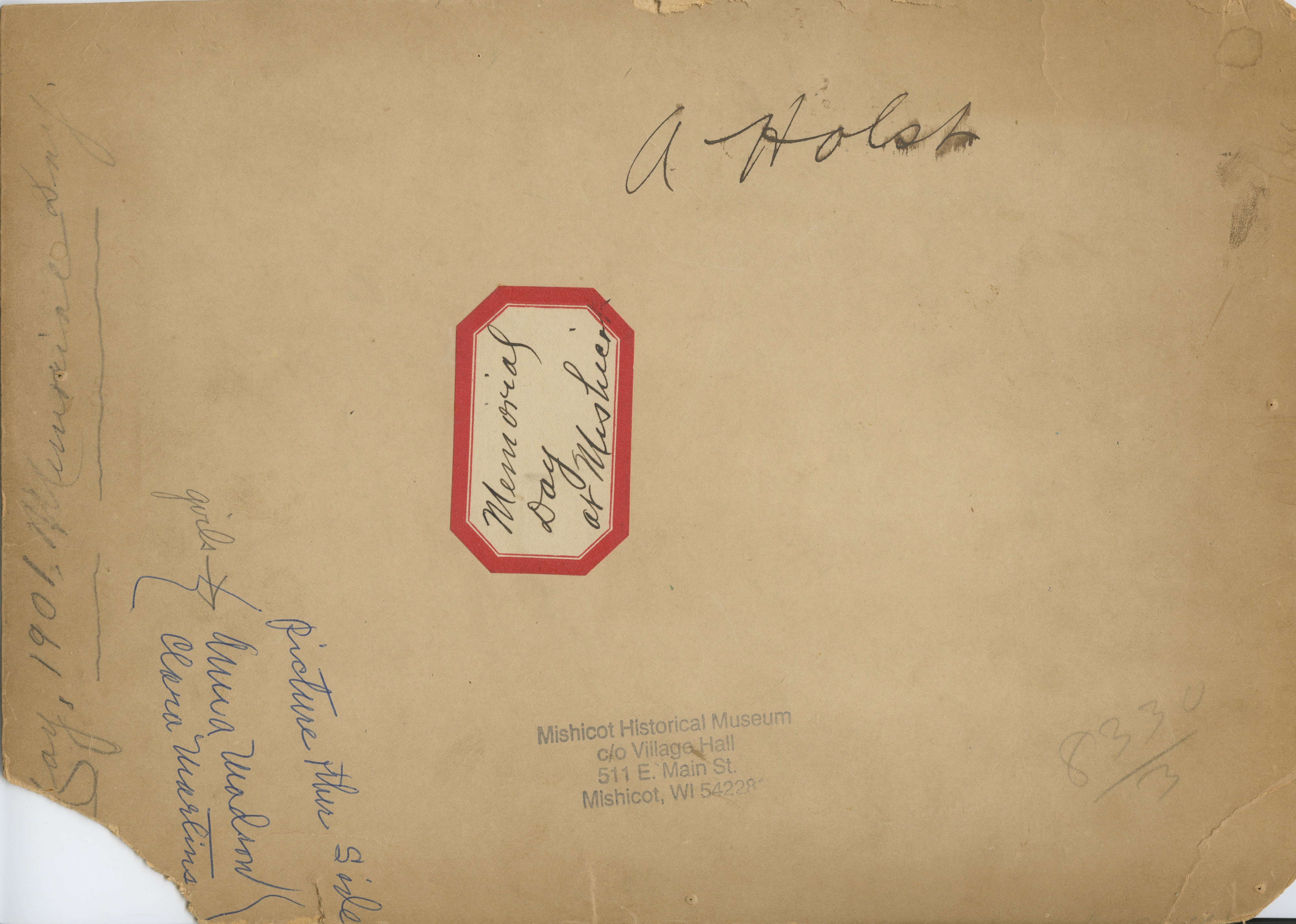 A 1901 photo of Mishicot, Wisconsin’s Memorial Day parade on Main Street. The photo was captured facing northeast in front of 439 E. Main Street.