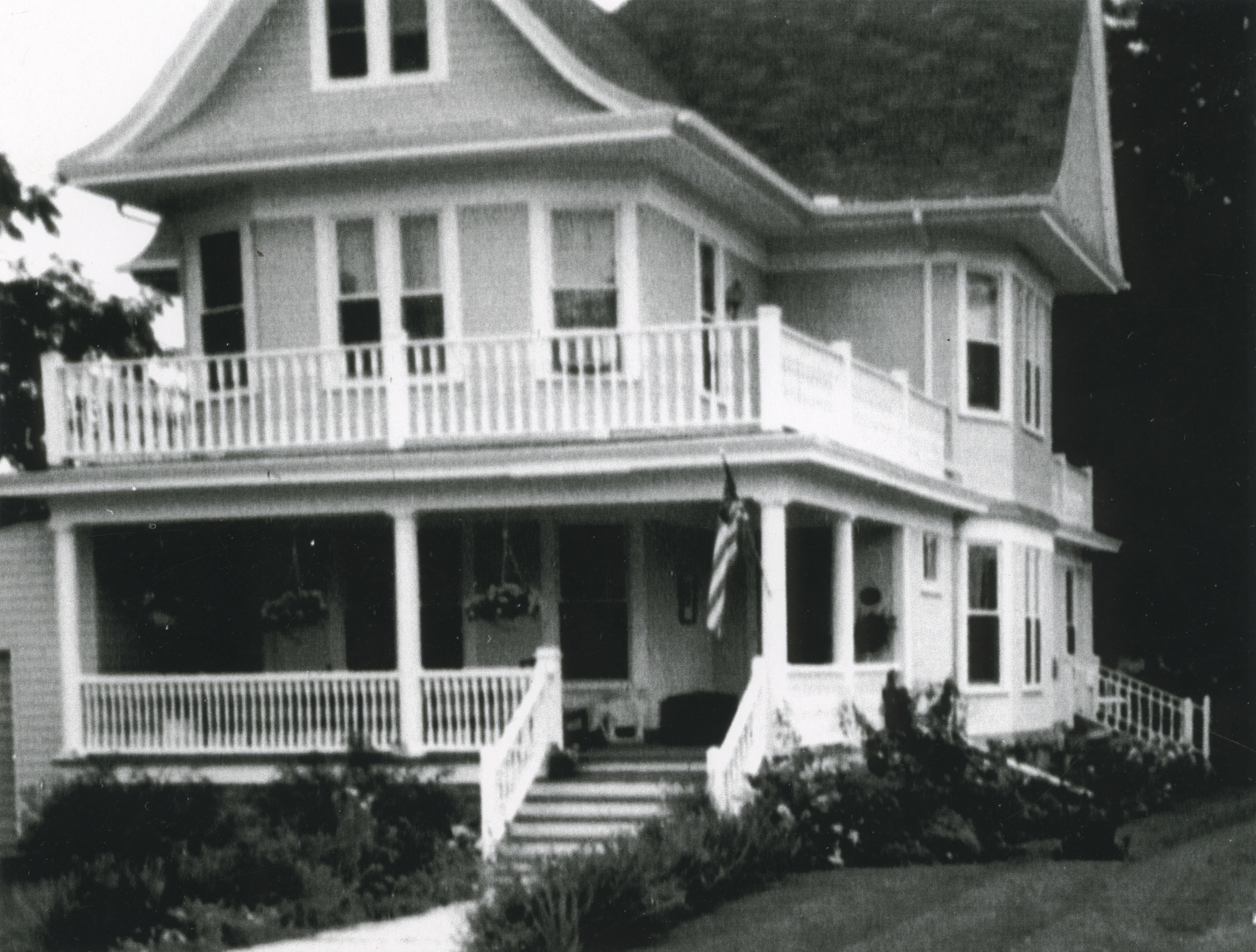 This large, stately house was built in 1906 by Matt Zima for Nicolas H. and Coretta Thompson Scheuer, at a cost of $6,000. It follows the design of a number of other large Victorian Style Homes in the village. Members of the Scheuer family continued to live in the house until around 1990, when Johanna Pelishek purchased the house and turned it into a Bed and Breakfast. Around 1995, Atty. Robert Paul and his wife, Annette, purchased the house and continue to live there today. In addition to the house, a large barn, located where the former grocery store still stands next to the Village Hall, was also built by Mr. Zima. This barn was primarily used to house cattle that were later slaughtered for Scheuers’ Meat Market.