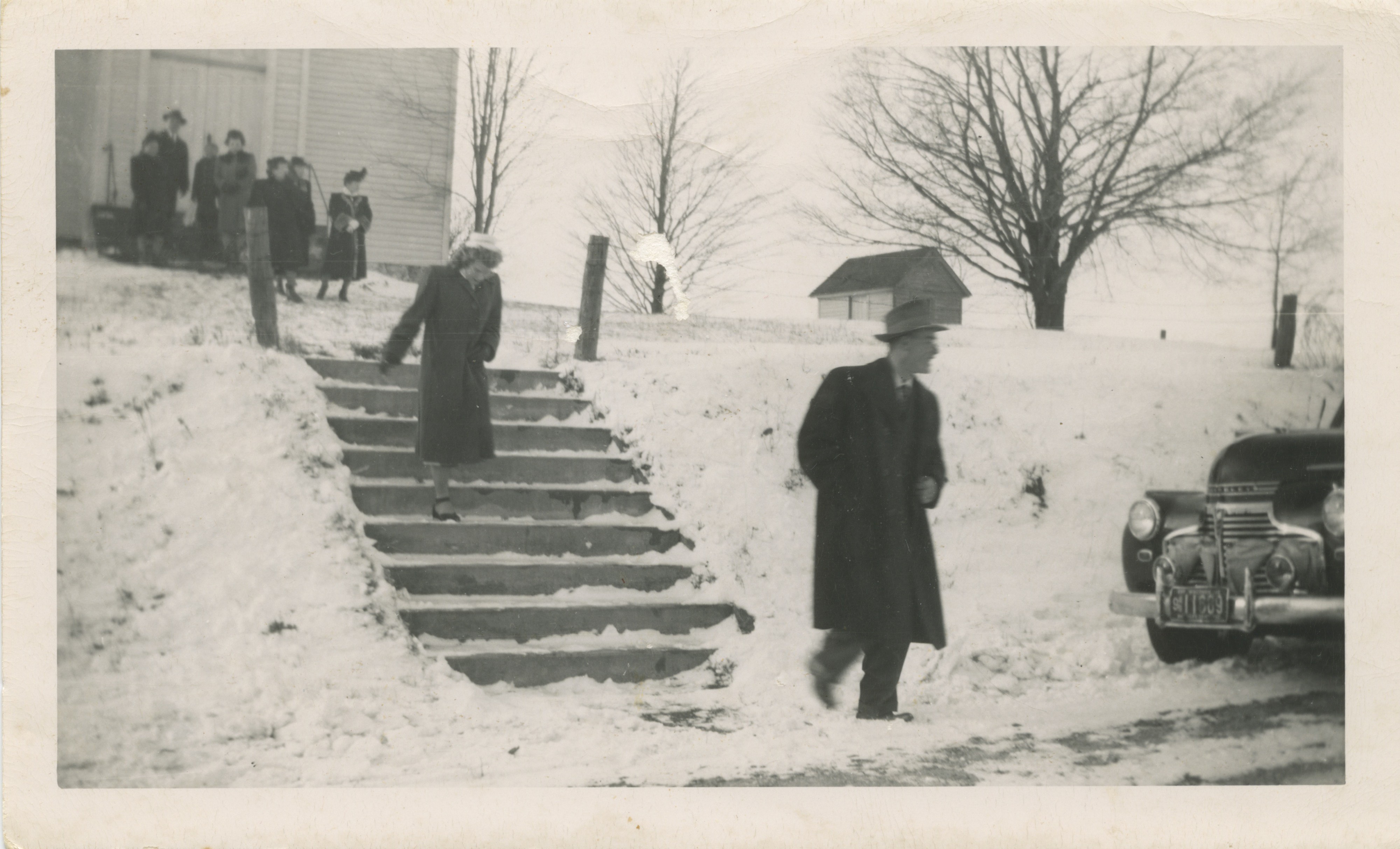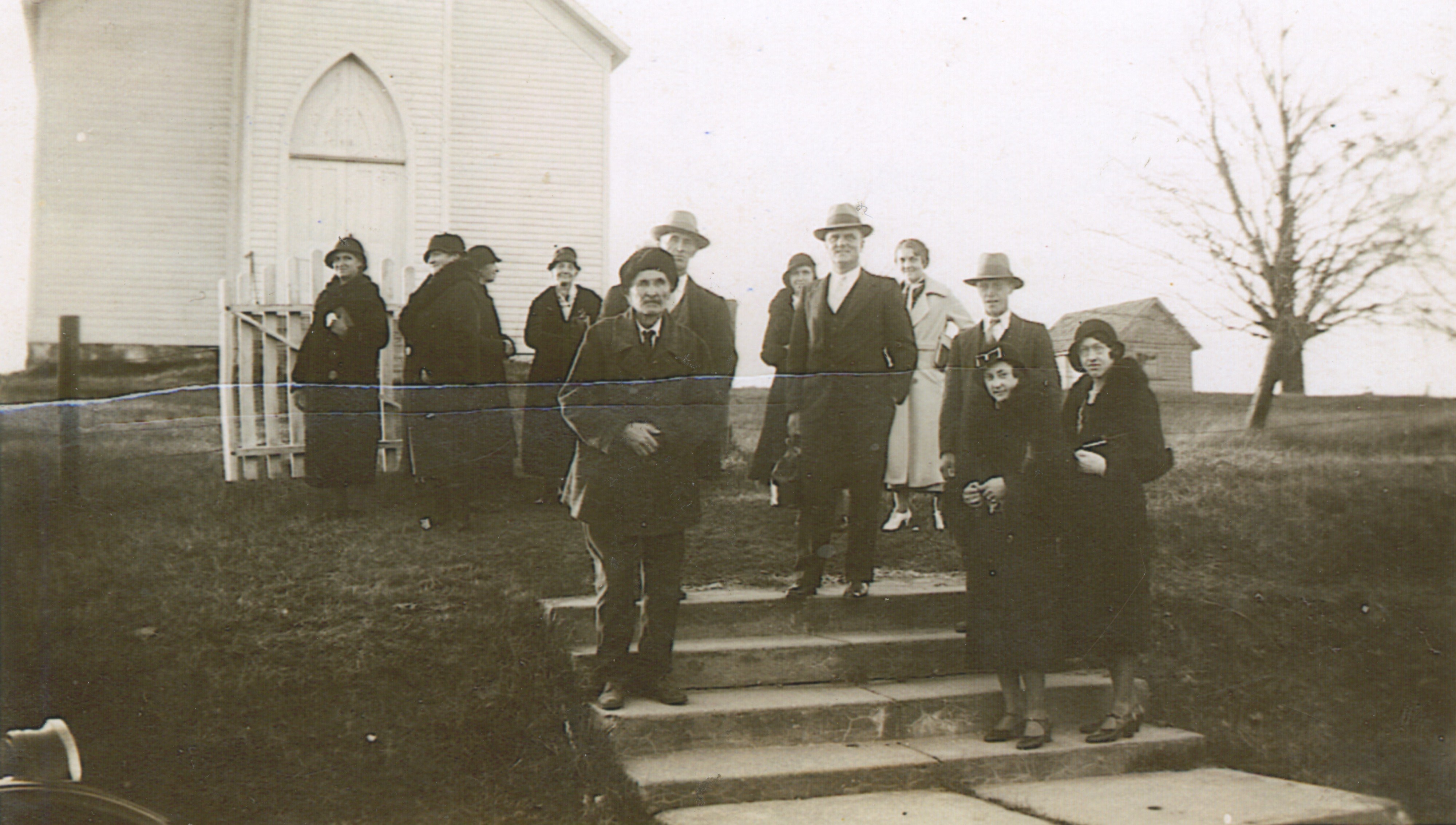 Miscellaneous photos of the Norwegian Lutheran Jambo Creek Church, which was located on Jambo Creek Road near Mishicot, Wisconsin in the township of Gibson. One photo is dated 1949, the same year the church was disbanded.